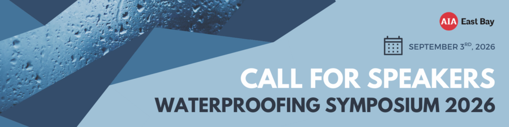 AIA East Bay is hosting an all-day Waterproofing Symposium on Thursday, September 3rd, 2026, in Berkeley, CA, and we’re looking for six dynamic speakers to present engaging, one-hour sessions. If you have expertise in waterproofing and a story to tell, we want to hear from you!